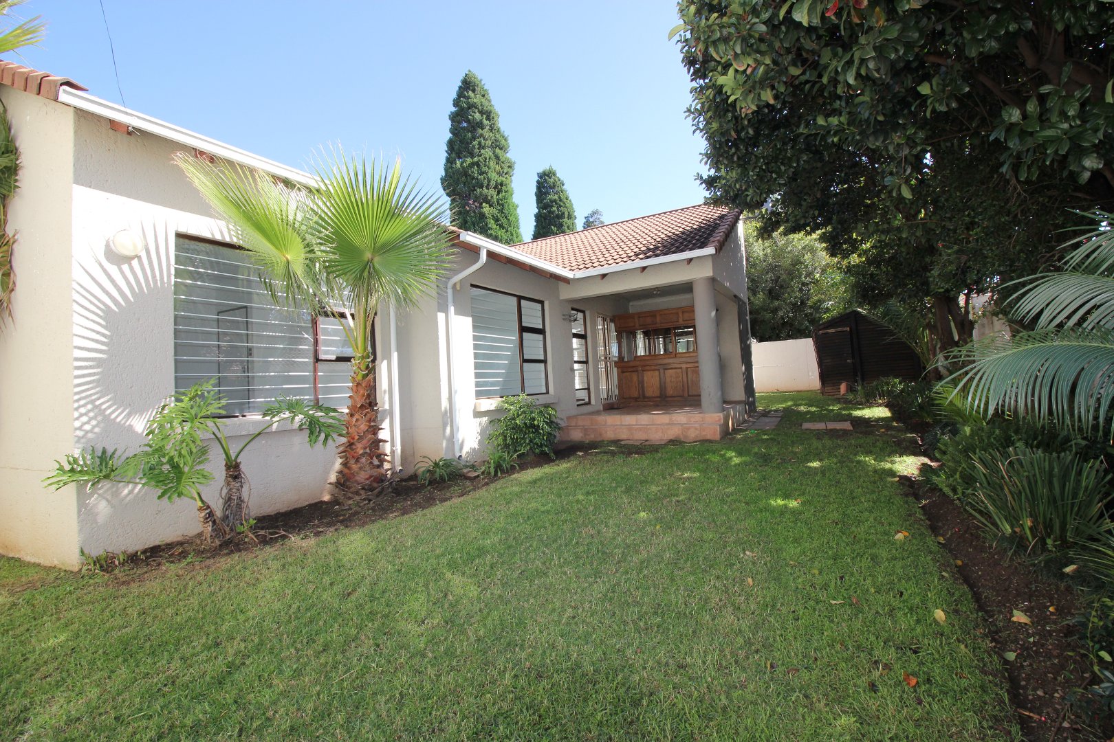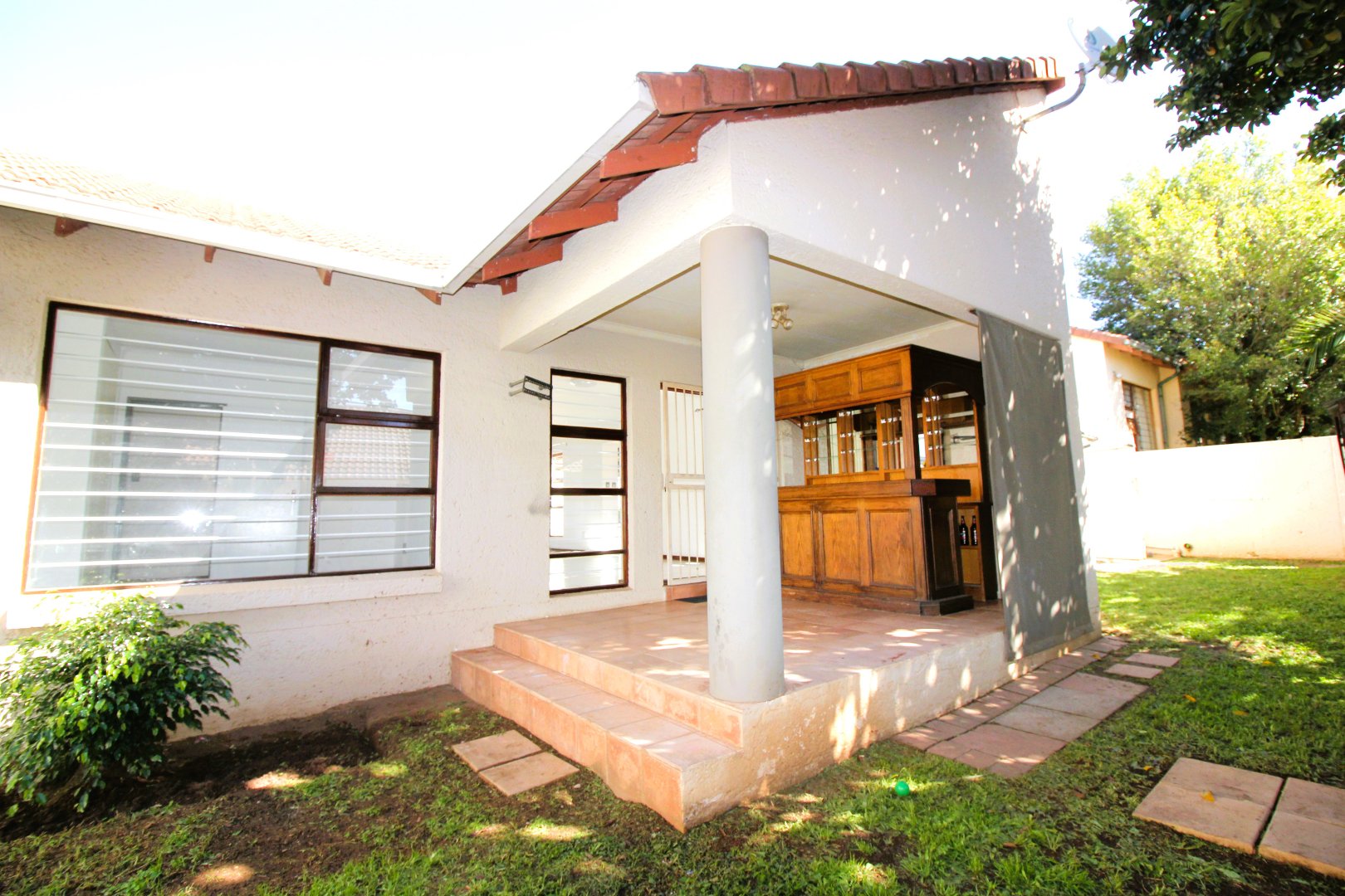Well located, this stand-alone home has an instant appeal for the younger family. Enter to an open-plan lounge and dining room that are offset from the well-appointed kitchen. Ideal for the entertainer, one finds a covered patio with a built-in pub off the lounge. The covered patio looks out onto a private spacious wrap-around garden. The property comes with two garages. One garage is a Hollywood and the other is a lockup garage. The property is situated in a secure gated community offering excellent security.